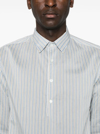 striped shirt Highlights - Sky blue - Short front button fastening - Buttoned cuffs - Box-pleat detail - Curved hem Made in Italy Composition Cotton 80%, Silk 20% SIZE & FIT Model measurements Height 6 ft 2 in(1.87 m) Bust/Chest 36.41 in(92.5 cm) Hips 37 in(94 cm) Waist 29.52 in(75 cm) FittingInformation Designed for a relaxed fit, this piece allows for comfort and movement when worn Made from a lightweight non-stretch fabric