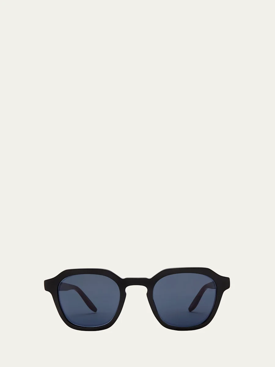 Barton Perreira "Tucker" square sunglasses with zyl frames Lens/bridge/temple (in mm): 4924148 Solidcolor lenses Keyhole nose bridge Metal plaque on the temples Tapered arms Curved temple tips Zyl 100% UVA/UVB protection Made in Japan