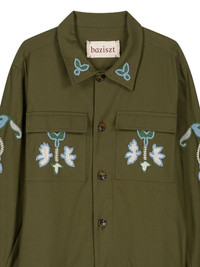 embroidered romper Highlights - Khaki - Floral embroidery - Button fastening - Long sleeves - Chest pockets Imported Composition Fabric 100% Washing instructions Read Manufacturer Guidelines