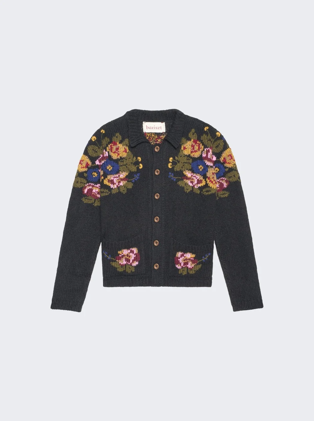Details - Baby alpaca wool cardigan - Responsibly sourced in Peru - Delicate, colorful floral embroideries across the chest and shoulders - Dark buttons and two front pockets - Material: 70% Alpaca, 7% Wool, 23% Polyester Size Information: Vendor Color Code: Brand Style: BZFW25CA08861 Designer/Brand: BAZISZT