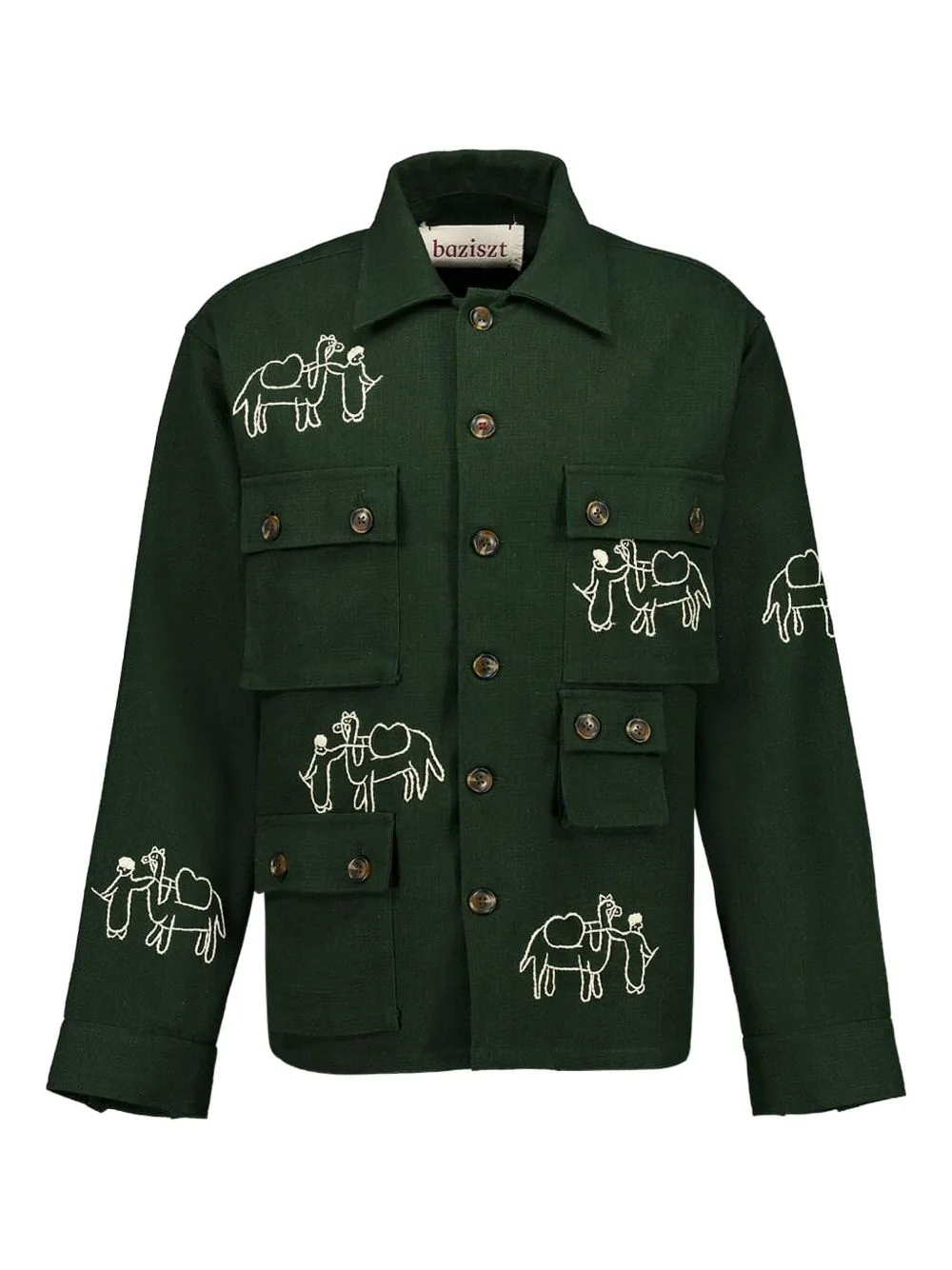 camel-embroidered multi-pocket shirt Highlights - Green - Embroidered camel motif - Multiple pockets - Long sleeves - Button fastening - Cotton Imported Composition Cotton 100% Washing instructions Read Manufacturer Guidelines