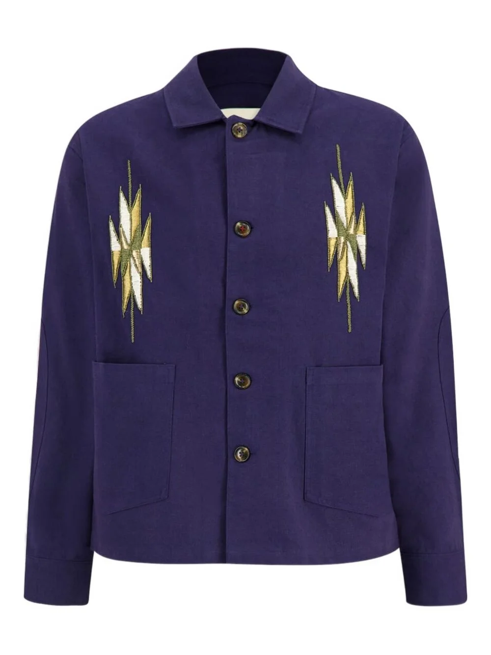 embroidered cotton jacket Highlights - Navy blue - Embroidered detail - Button fastening - Long sleeves - Patch pockets Imported Composition Cotton 100% Washing instructions Read Manufacturer Guidelines