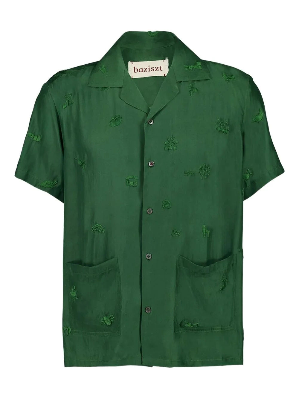 embroidered pocket shirt Highlights - Green - Short sleeves - Embroidered pattern - Patch pockets - Camp collar - Silk fabric Imported Composition Silk 100% Washing instructions Read Manufacturer Guidelines