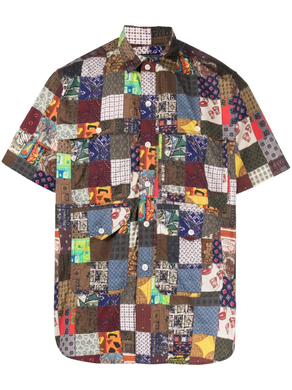 Adventure patchwork-print shirt Highlights - Brown/multicolour - Patchwork pattern print - Straight-point collar - Front button fastening - Short sleeves - Four front patch pockets - Curved hem Imported Composition Polyester 100% SIZE & FIT Model measurements Height 6 ft 0 in(1.84 m) Bust/Chest 35.82 in(91 cm) Hips 37 in(94 cm) Waist 28.34 in(72 cm) FittingInformation Designed for a boxy fit, intended for a loose fit throughout Made from a midweight non-stretch fabric This piece fits true to size – take your usual size Measurement CHEST 40 in(101.6 cm) SLEEVE LENGTH 9.01 in(22.9 cm) LENGTH 27 in(68.6 cm) WAIST 40.98 in(104.1 cm) Washing instructions Machine Wash