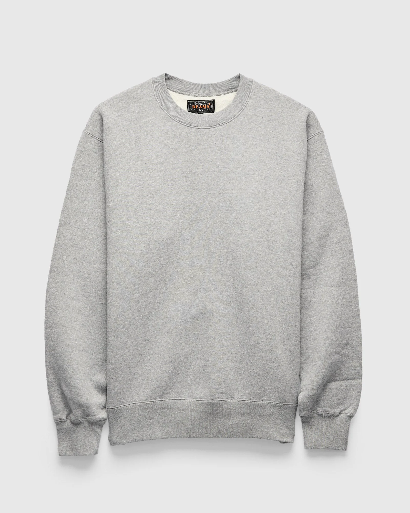 Introduced in the 1970s, Azuma knitting machines were among the first to replace Tsuri-Ami loopwheel machines in Japan. While faster than traditional loopwheelers, they still operate at an extremely slow pace, producing only one to two bolts of fabric per day; resulting in a soft, dense knit with a lofty texture. This BEAMS PLUS crew neck sweatshirt is made in Japan using heavyweight Azuma-knit fleece with a brushed interior for warmth and comfort. Cut in a regular fit inspired by vintage 1970s knits, it features set-in sleeves, ribbed cuffs and hem, and a seamless circular knit body for a smooth fit against the skin. - Regular fit - Heavyweight Azuma-knit fleece - Brushed interior - Seamless circular knit body - Set-in sleeves - Ribbed cuffs and hem - 100% cotton - Made in Japan