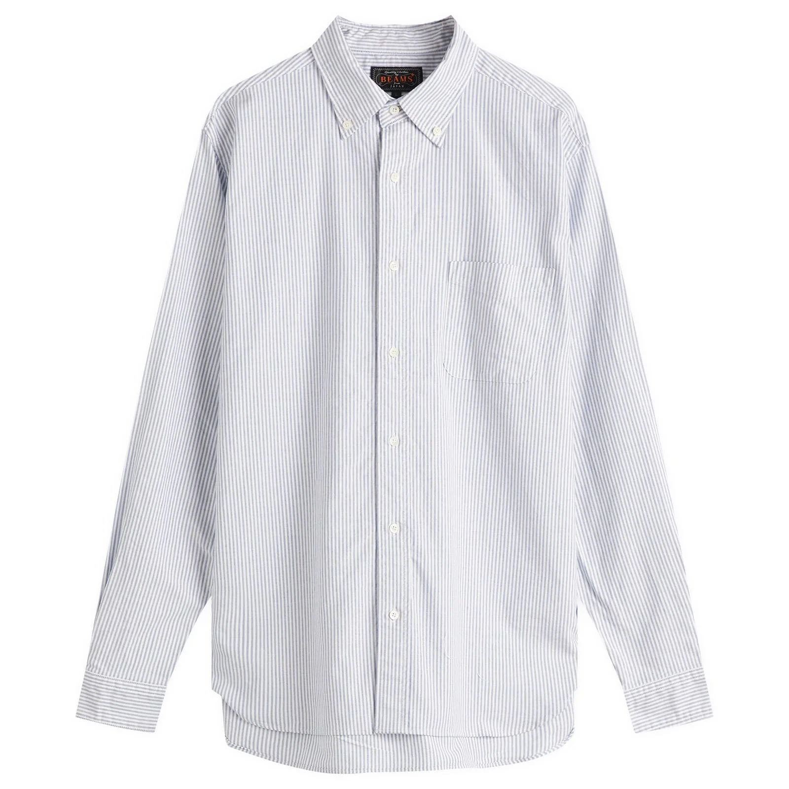 Beams Plus takes a more refined approach to styling with this blue striped button-down shirt. Expertly-crafted in the brand's native Japan - from light and breathable cotton - it offers up a classic cut and is buttoned down the front. - 100% Cotton - Button-Down Collar - Chest Pocket - Made in Japan