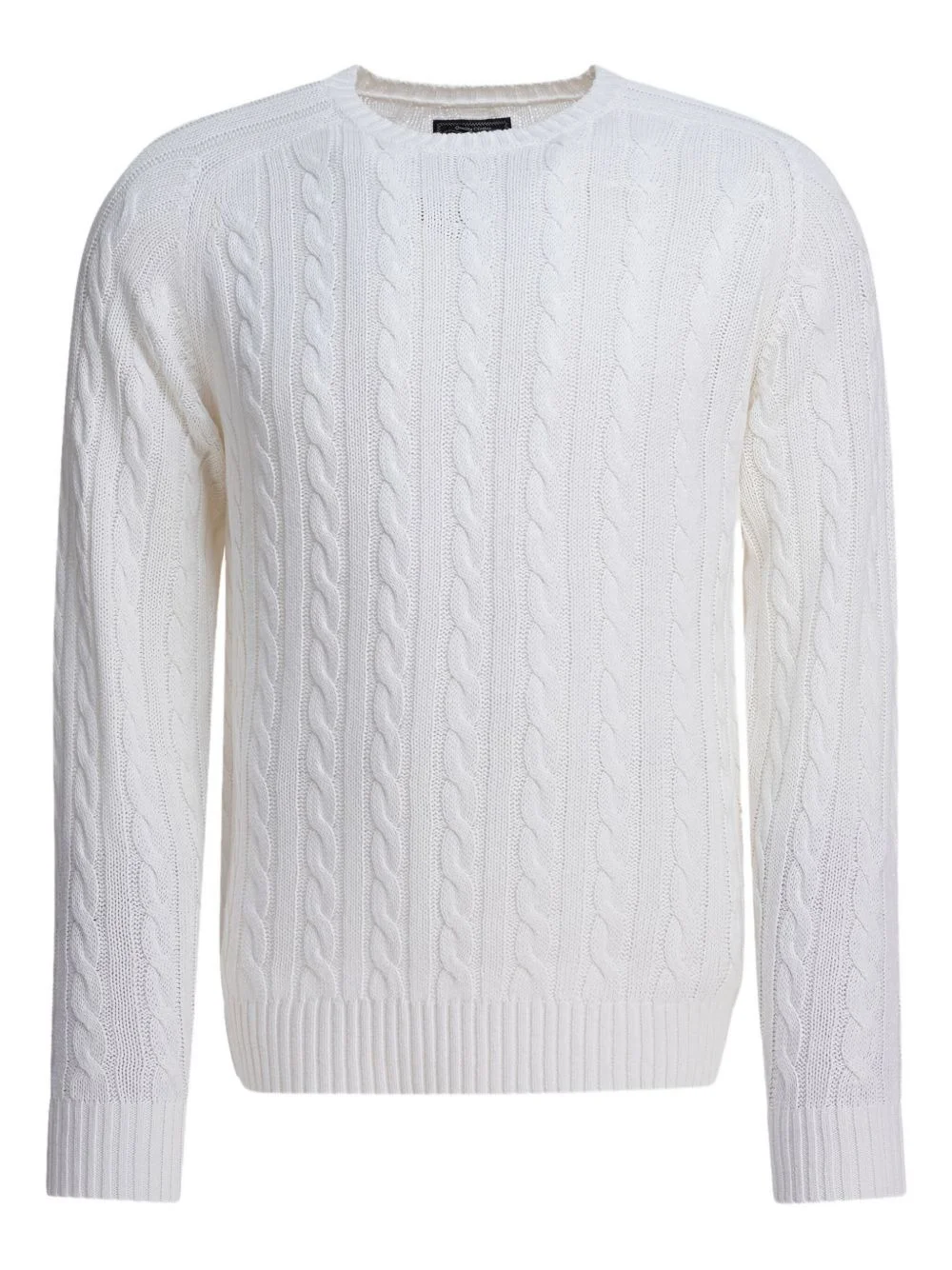 cable-knit crew-neck sweater Highlights - Off-white - Cable knit - Crew neck - Long sleeves - Ribbed cuffs - Ribbed hem Imported Composition Linen/Flax 55%, Cotton 45% Washing instructions Read Manufacturer Guidelines