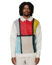 I'm getting serious Mondrian vibes from these wool mohair polos. Like how I snuck in all those key words. One thing grad school taught was how to distract with key words like leverage and economies of scale, this time around we're using WOOL MOHAIR PEOPLE! DETAILS - Wool mohair knit - Geometric design - Three button placket - Ribbed neck, cuffs & hem - 42% nylon 31% wool 27% mohair, 44% nylon 28% mohair 27% wool 1% polyurethane rib - Model is 5’7” (170cm), 138lbs (63kg) and wearing M