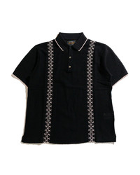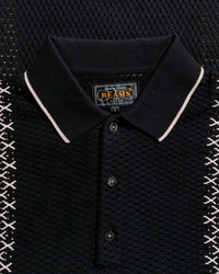Knit Polo Mesh Stripe Black