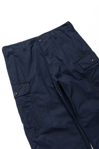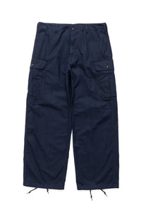 - Military pants based on the US military ripstop poplin trousers of the 1960s. - Rope dyed indigo - Indigo-dyed ripstop fabric with different shades for the base and ripstop parts. - Relaxed silhouette - The side pockets are double pockets with a smaller patch pocket inside. - The original details were used for hemostasis, but by adding a D-ring to the tip, the tape can be used as a key chain. - Color: Sumi - 100% cotton - Style #: 38-24-0104-791 - Model is 6'2 wearing a size L