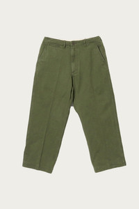 Standard military herringbone chino pant with a style that never seems to fade. The herringbone, folded cuff, slash pockets, and coin pocket all speak to the lack of corners cut. Fits True To Size. - Herringbone - Zip Closure - Mid-Rise - Back Welt Pockets - Made In Japan - Olive