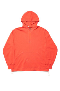 - Half-zip - Chin strap - Drawcord hem - 100% cotton fleece