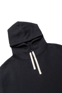 - Heavy weight fleece material made in Japan using rare old-fashioned knitting machine "Azuma knitting machine" - The Azuma knitting machine is one of the early knitting machines in the 1970s, when loop knitting machines were transformed into high-speed knitting machines. The knitting speed is extremely slow, and it is a knitting machine with low productivity that can only knit about 1 to 2 rolls per day. Because the speed is gradual, the fabric feels soft. - Color: Black - 100% cotton - Made in Japan - Model is 6'2 wearing a size L