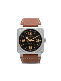 BR 03-92 42mm Recognised for their aviation-inspired aesthetic and aeronautical design ethos, Bell & Ross hand-craft immaculate timepieces in La-Chaux-de-Fonds that ensure faultless quality. The BR 03-92 collection meets specifications of the air force, with unique square cases that reference cockpit board instruments. The BR 03-92 42mm features a mechanical automatic movement, a black dial, a satin-polished steel square case, an anti-reflective sapphire crystal face, a 100m water resistance and a durable leather strap with a steel pin buckle which can be interchanged for a canvas variation. Functions include hours, minutes and seconds as well as a date indication - all with a SuperLuminova coating for optimal visibility. This item comes with a standard 2-year international warranty. For any questions regarding this product or any other fine watch, please contact our Customer Service team. Imported Composition stainless steel 100%, Calf Leather 100%, Sapphire Glass 100% SIZE & FIT Model measurements Height 6 ft 1 in(1.85 m) Bust/Chest 35.82 in(91 cm) Hips 37.79 in(96 cm) Waist 29.13 in(74 cm) Measurement Case size 1.65 in(42 mm) Case thickness 0.35 in(9 mm) Maximum strap length 8.26 in(21 cm) Minimum strap length 6.69 in(17 cm) Strap width 1.25 in(32 mm)