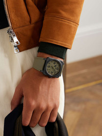 Bell & Ross' timepieces are engineered to withstand extremes, which is why they’re regularly used by astronauts, military pilots and divers as part of their kit. Inspired by aerospace instruments, this 'BR 03' reference has a squared ceramic case that houses a BR-CAL.302 automatic calibre automatic movement with a substantial 54-hour power reserve. The army-green dial features a discrete date window and Super-LumiNova®-coated hands and indices, so it's easy to read in the dark. For warranty information, please refer to details & care Details & Care Movement - Swiss-made calibre BR-CAL.302 automatic movement with 54-hour power reserve - 25 jewels, 28,800 Vph Functions - Hour, minute and second hands - Date window Dial - Army-green dial - Black Super-LumiNova® hands, numerals and indices - Case - Black ceramic case - Crown for time adjustments and manual winding - Sapphire crystal glass - Engraved case back - Ardiglione buckle-fastening army-green rubber strap Specifications - Case diameter: 41mm; case thickness: 10.60mm; lug width: 24mm - Water resistance: 10 bar - Comes in a presentation box - Reference number: BR03A-MIL-CE/SRB We offer a two-year warranty for all working parts and manufacturing faults for luxury watches. For more information, contact one of our experts by emailing watches@mrporter.com