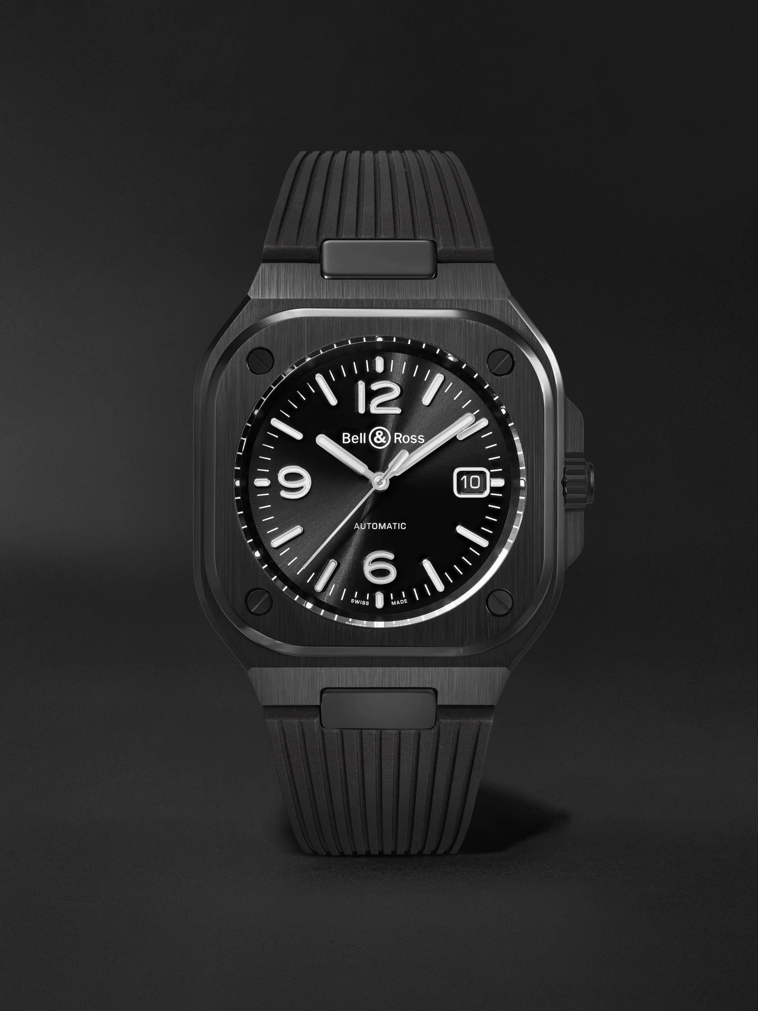 You'll only find the unique 'Copper Brown' dial on this Bell & Ross 'BR 05' watch, which makes it even more special - the satin-brushed sunburst finish is designed to mimic the light at the end of summer's day. It's been crafted in Switzerland with a polished and satin-finished stainless steel case and bracelet and is powered by a Swiss-made calibre BR-CAL.321 automatic movement that can be viewed through the exhibition case back. Super-LumiNova®-filled hands, numerals and indices ensure maximum legibility at all times. We offer a two-year warranty for all working parts and manufacturing faults for luxury watches. For more information, contact one of our experts by emailing watches@mrporter.com Details & Care Movement - Swiss-made calibre BR-CAL.321 automatic movement - 25 jewels Functions - Hour, minute and seconds hands - Date window Dial - Soleil-black sunray-effect dial - White Super-LumiNova® hands, numerals and indices Case - Stainless steel case - Crown for date and time adjustments and manual winding - Sapphire glass crystal - Exhibition case back - Folding clasp-fastening black rubber strap Specifications - Case diameter: 40mm; case thickness: 10.33mm - Water resistance: 10 bar - Comes in a presentation box - Reference number: BR05A-BL-CE/SRB