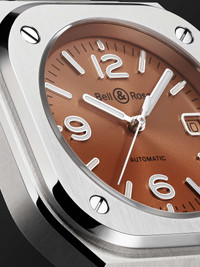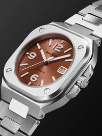 You'll only find the unique 'Copper Brown' dial on this Bell & Ross 'BR 05' watch, which makes it even more special - the satin-brushed sunburst finish is designed to mimic the light at the end of summer's day. It's been crafted in Switzerland with a polished and satin-finished stainless steel case and bracelet and is powered by a Swiss-made calibre BR-CAL.321 automatic movement that can be viewed through the exhibition case back. Super-LumiNova®-filled hands, numerals and indices ensure maximum legibility at all times. We offer a two-year warranty for all working parts and manufacturing faults for luxury watches. For more information, contact one of our experts by emailing watches@mrporter.com Details & Care Movement - Swiss-made calibre BR-CAL.321 automatic movement 25 jewels Functions - Hour, minute and seconds hands Date window Dial - Light-brown sunray-effect dial White Super-LumiNova® hands, numerals and indices Case - Stainless steel case - Crown for date and time adjustments and manual winding - Sapphire glass crystal - Exhibition case back Folding buckle-fastening bracelet Specifications - Case diameter: 40mm; case thickness: 10.33mm - Water resistance: 10 bar - Comes in a presentation box - Reference number: BR05A-BR-ST/SST