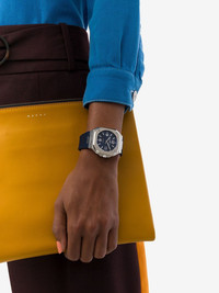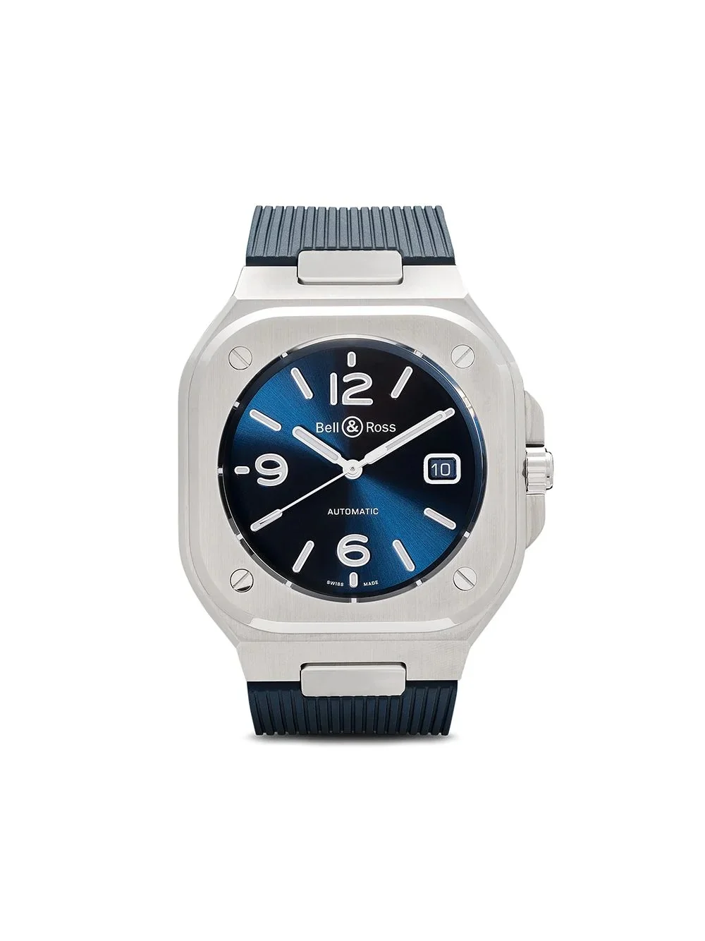 BR 05 Blue Steel 40mm Known for their aviation-influenced aesthetic and streamlined designs, Bell & Ross hand-craft immaculate timepieces in Switzerland that ensure faultless quality. Designed for professionals in extreme environments, the BR 05 series offers a new and urban finish to the classic collections. The BR 05 Blue Steel 40mm takes on the same shape face as the previous BR 03 collections, crafted from navy blue and silver-tone satin-polished stainless steel with a sapphire crystal face. Powered by a calibre BR-CAL.321 automatic movement, this 40mm timepiece features hours, minutes, seconds and a date dial. Water-resistance up to 100 metres with a folding adjustable buckle for a comfortable fit. This item comes with a standard 2-year international warranty. For any questions regarding this product, warranties or any other fine watch, please contact our Customer Service team. Imported Composition Rubber 100%, stainless steel 100%, Sapphire Glass 100% SIZE & FIT Model measurements Height 5 ft 11 in(1.8 m) Bust/Chest 31.49 in(80 cm) Hips 35.82 in(91 cm) Waist 24.8 in(63 cm) Measurement Case size 1.57 in(40 mm) Case thickness 0.43 in(11 mm) Maximum strap length 8.26 in(21 cm) Strap width 0.94 in(24 mm)