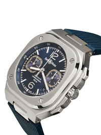 BR 05 Chrono 42mm Known for their aviation-influenced aesthetic and streamlined designs, Bell & Ross handcraft immaculate timepieces in Switzerland that ensure faultless quality. Designed for professionals in extreme environments, the BR 05 series offers a new and urban finish to the classic collections, like this BR-05 Chrono 42mm. Highlights - 42mm - Royal blue - Stainless steel - Cushion face - Baton dial - Baton hands - Chronograph counters - Date indication - Screw-down crown - Rubber strap - Buckle fastening - Automatic movement - Water resistance up to 100m/10 atm - This item comes with a standard two-year warranty from the brand. Imported Composition Rubber 100%, Sapphire 100%, stainless steel 100% SIZE & FIT Model measurements Height 6 ft 0 in(1.84 m) Bust/Chest 36.22 in(92 cm) Hips 35.43 in(90 cm) Waist 26.77 in(68 cm) Measurement Case size 1.65 in(42 mm) Case thickness 0.55 in(14 mm) Maximum strap length 9.25 in(23.5 cm) Minimum strap length 7.28 in(18.5 cm) Strap width 0.94 in(24 mm)