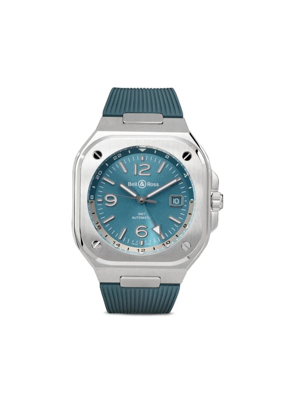 BR-05 GMT 41mm Known for their aviation-influenced aesthetic and streamlined designs, Bell & Ross handcraft immaculate timepieces in Switzerland that ensure faultless quality. Designed for professionals in extreme environments, the BR 05 series offers a new and urban finish to the classic collections, like this BR-05 GMT 41mm. Highlights - 41mm - Blue - Arabic dial - Index dial - Stainless steel case - Skeleton case back - Silicone strap - Deployant-clasp fastening - Water resistance up to 100m/10 atm - Automatic movement - Central hours, minutes and seconds - Date indication - This item comes with a standard two-year warranty from the brand. Imported Composition stainless steel 100%, Rubber 100% SIZE & FIT Model measurements Height 6 ft 1 in(1.85 m) Bust/Chest 35.82 in(91 cm) Hips 37.79 in(96 cm) Waist 29.13 in(74 cm) Measurement Case size 1.57 in(40 mm) Case thickness 0.19 in(5 mm) Maximum strap length 9.05 in(23 cm) Minimum strap length 7.08 in(18 cm) Strap width 0.78 in(20 mm)