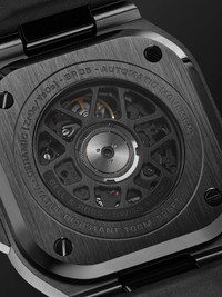 This 41mm version of Bell & Ross' recognisable 'BR 05' watch is designed to slot effortlessly into a modern lifestyle. It's been assembled by hand in Paris from sleek black ceramic that's lightweight, yet hardwearing and resistant to scratches and detailed with Super-LumiNova® hands and indices that are visible in the dark. Observe the working intricacies of the automatic calibre BR-CAL.322-1 movement through the skeletonised dial. For warranty information, please refer to details & care Details & Care Movement - Swiss-made calibre BR-CAL.322-1 automatic movement with 54-hour power reserve - 25 jewels, 28,800 Vph Functions - Hour, minute and second hands Dial - Skeletonised dial - White Super-LumiNova® hands and indices - Case - Black satin-finished and polished ceramic case - Crown for time adjustments and manual winding - Sapphire anti-reflective glass crystal - Exhibition case back - Pin buckle-fastening black rubber strap Specifications - Case diameter: 41mm; case thickness: 11.2mm - Water resistance: 10 bar - Comes in a presentation box - Reference Number: BR05A-BL-SK-CE/SRB We offer a two-year warranty for all working parts and manufacturing faults for luxury watches. For more information, contact one of our experts by emailing watches@mrporter.com