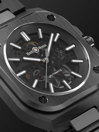 This 41mm version of Bell & Ross' recognisable 'BR 05' watch is designed to slot effortlessly into a modern lifestyle. It's been assembled by hand in Paris from sleek black ceramic that's lightweight, yet hard-wearing and resistant to scratches and detailed with Super-LumiNova® hands and indices that are visible in the dark. Observe the working intricacies of the automatic calibre BR-CAL.322-1 movement through the skeletonised dial. For warranty information, please refer to details & care Details & Care Movement - Swiss-made calibre BR-CAL.322-1 automatic movement with 54-hour power reserve - 25 jewels, 28,800 Vph Functions - Hour, minute and second hands Dial - Skeletonised dial - White Super-LumiNova® hands and indices - Case - Black satin-finished and polished ceramic case - Crown for time adjustments and manual winding - Sapphire anti-reflective glass crystal - Exhibition case back - Folding buckle-fastening PVD-finished ceramic steel bracelet Specifications - Case length: 41mm; case thickness: 11.2mm - Water resistance: 10 bar - Comes in a presentation box - Reference Number: BR05A-BL-SK-CE/SCE We offer a two-year warranty for all working parts and manufacturing faults for luxury watches. For more information, contact one of our experts by emailing watches@mrporter.com
