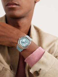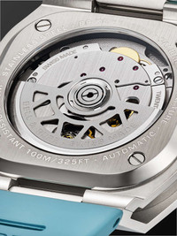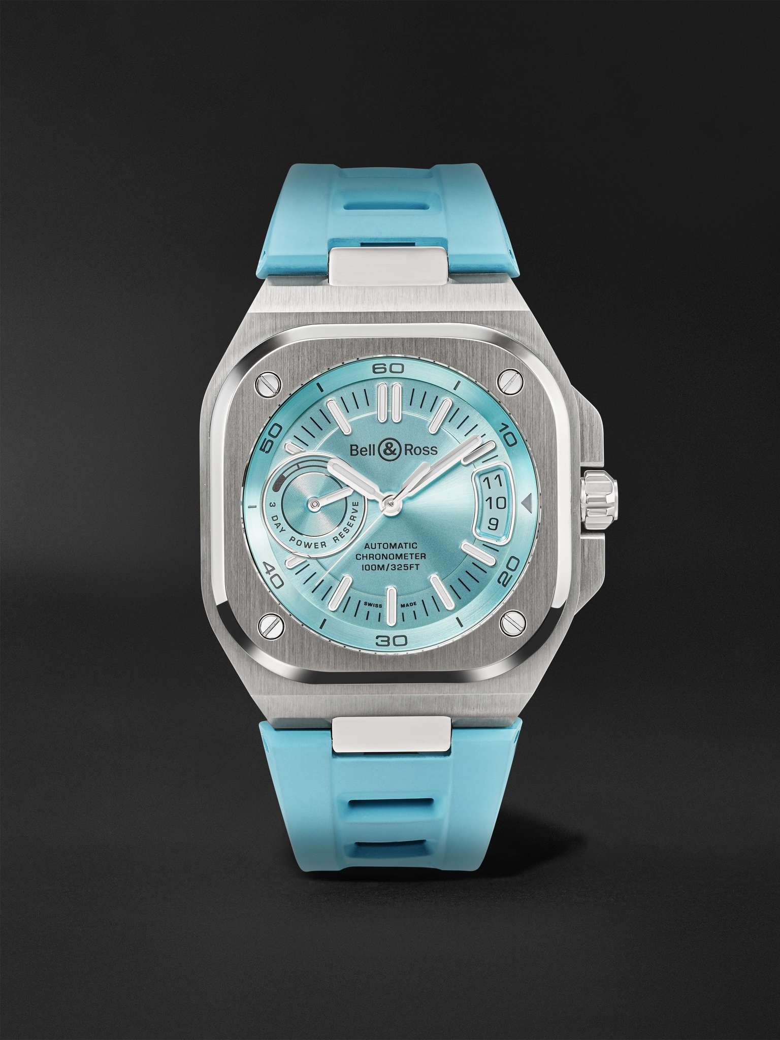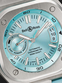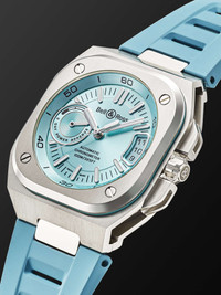 The "next generation" of Bell & Ross' classic 'BR 05' watch, this 'BR-X5' chronometer is engineered with a precise Swiss-made calibre BR-CAL.323 automatic movement from Geneva-based manufacturer Kenissi. Fitted on a perforated rubber strap, it's built with a multi-layered case - visible only from the sides - and features an oversized power reserve indicator and date window on either side of the 'Ice Blue' soleil dial. For warranty information, please refer to details & care Details & Care Movement - Swiss-made calibre BR-CAL.323 automatic movement with 70-hour power reserve - 28 jewels, 28,800 Vph Functions - Hour, minute and second hands - Date window - Power reserve display Dial - 'Ice Blue' soleil dial - Applied Super-LumiNova® hands, Arabic numerals and indices - Case - Satin-finished and polished steel case - Crown for date and time adjustments and manual winding - Sapphire glass crystal - Exhibition case back - Deployant-clasp fastening 'Ice Blue' rubber strap Specifications - Case diameter: 41mm; case thickness: 12.80mm - COSC-certified chronometer - Water resistance: 10 bar - Comes in a presentation box - Reference number: BRX5R-IB-ST/SRB We offer a two-year warranty for all working parts and manufacturing faults for luxury watches. For more information, contact one of our experts by emailing watches@mrporter.com