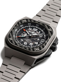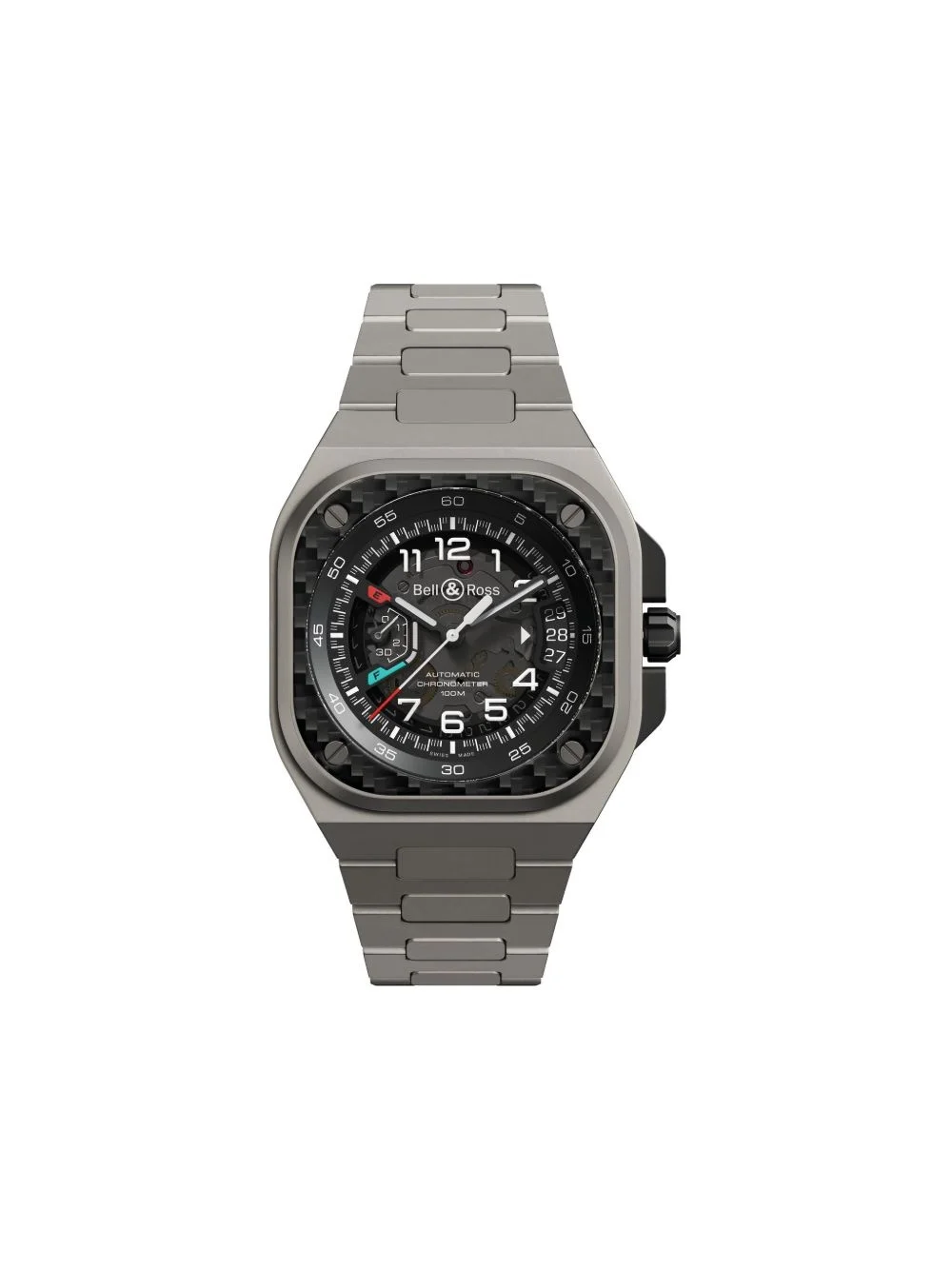 BR-X5 Racing 41mm Highlights - Black - Carbon dial - Titanium bracelet - Chronograph function - 100m water resistance - Luminous hour markers - Folding clasp - This item comes with a standard one-year warranty from the brand Imported Composition Carbon Fiber 100%, Titanium 100% SIZE & FIT Measurement Case size 1.61 in(41 mm) Case thickness 0.5 in(12.8 mm)