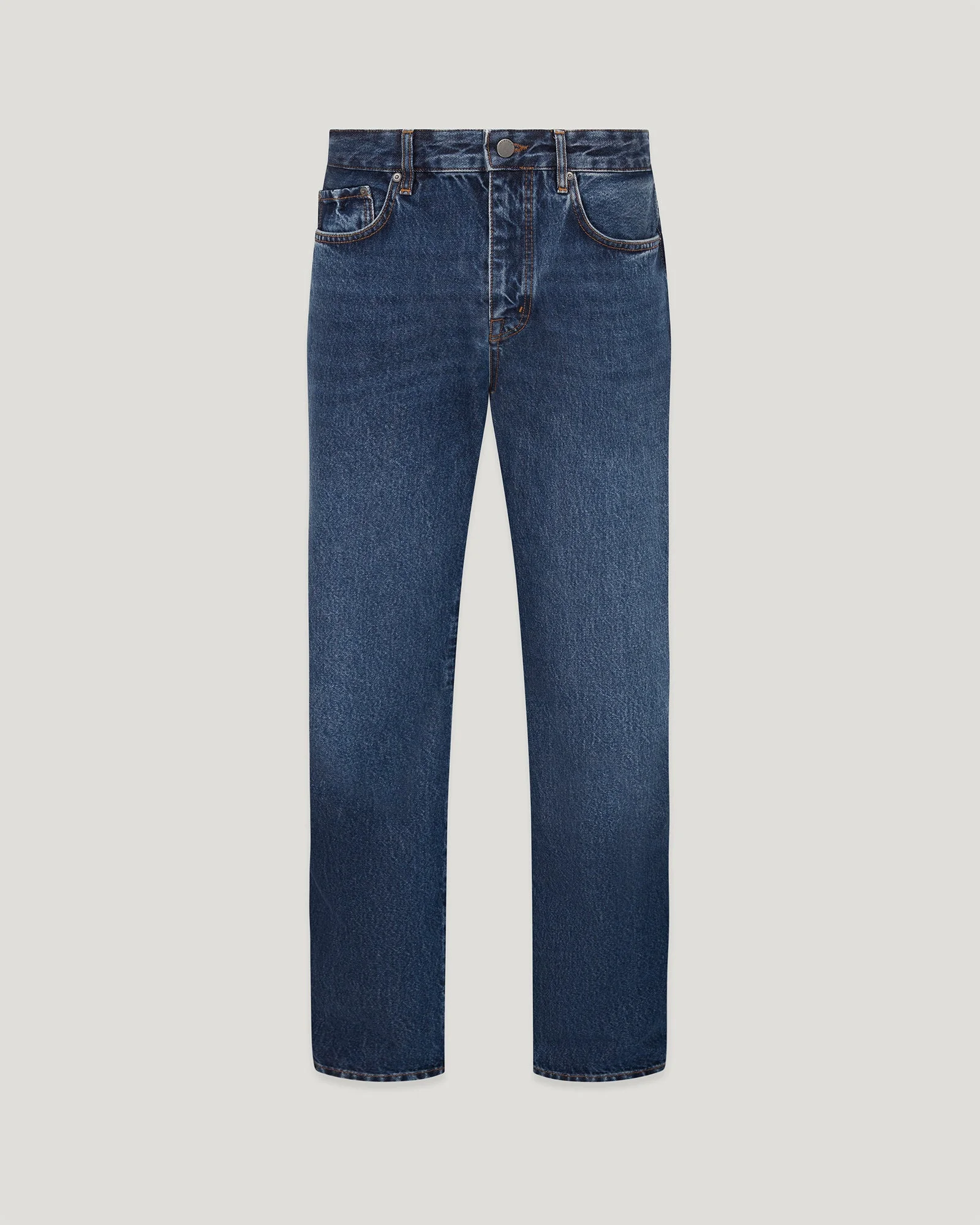 The B48 jeans are your go-to for Autumn / Winter. This pair of men’s Washed Indigo jeans features a washed denim finish that has been treated to achieve a faded appearance through various washing processes. The straight fit is based on a 1940s silhouette – specifically 1948, when Belstaff first introduced the iconic Trialmaster jacket DETAILS - Authentic denim - Cut for a straight fit - Mid rise - Classic 5-pocket design with angled coin pocket - Zip fly and button closure - Direct embroidered branded patch on rear pocket - Front hip pockets - Back pockets - Shell: 100% Cotton - Pocketing: 65% Polyester, 34% Cotton - Product ref: 105946WSIND SIZE AND FIT - Mid rise, straight leg - Model wears a size W32L32 - Model measures: Height: 6'1", Chest: 38”, Waist: 32"