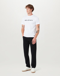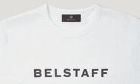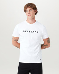 Comfortable and easy to wear, the white Belstaff Logo T-shirt is made from soft jersey cotton. A downtime staple available in several shades. DETAILS - Cotton jersey - Made in Portugal - Rib collar - Dual branding with printed chest script logo and phoenix on front - By choosing our cotton products, you’re supporting Belstaff`s investment in Better Cotton’s mission. This product is sourced via a system of mass balance and therefore may not contain Better Cotton. Learn more at bettercotton.org/learnmore - Main material: 100% Cotton - Product ref: 106037WHITE SIZE AND FIT - Cut for a regular fit - Model wears a size M - Model measures: Height: 6'1", Chest: 39”, Waist: 30"