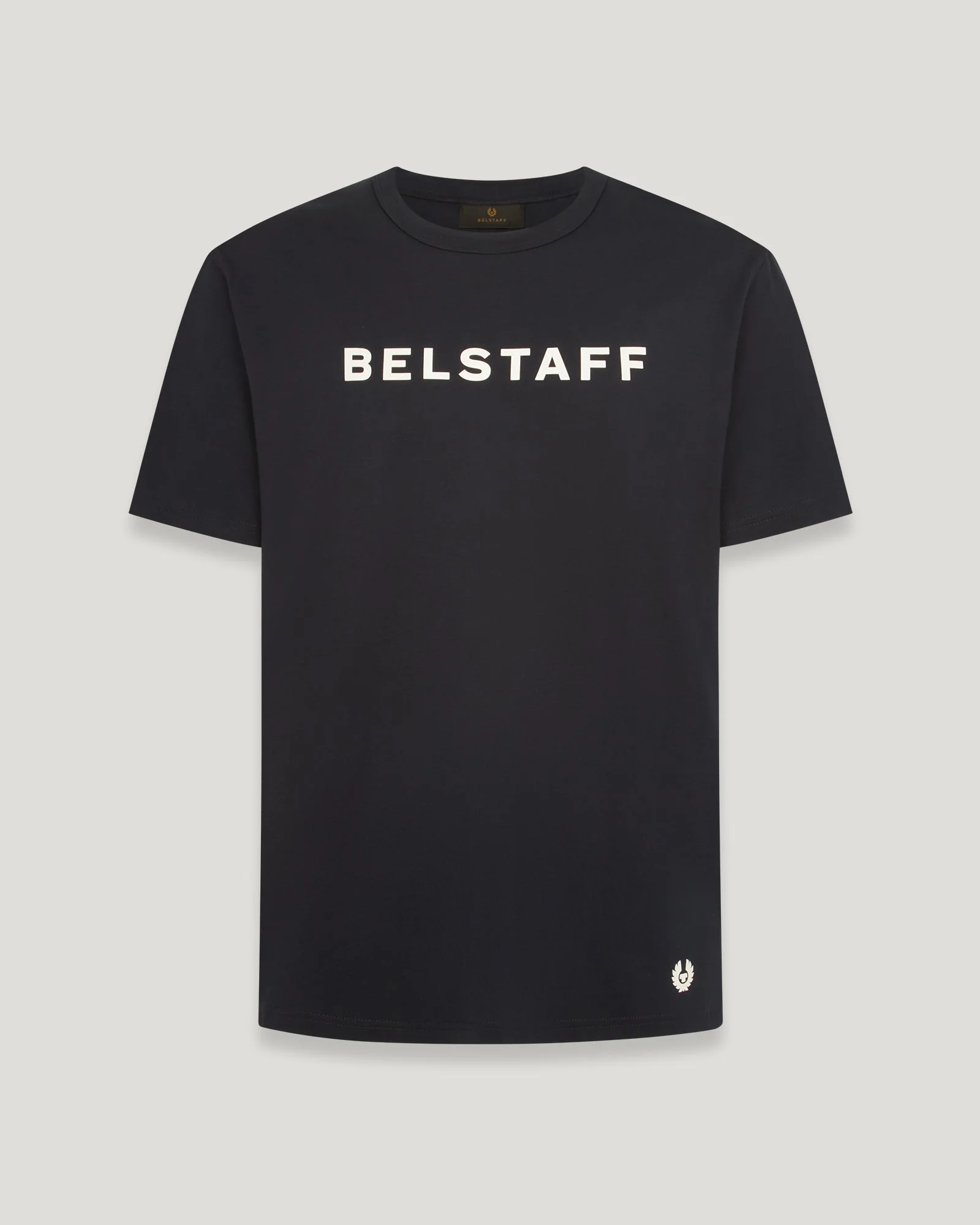 Comfortable and easy to wear, the Dark Ink Belstaff Logo T-shirt is made from soft jersey cotton. A downtime staple available in several shades. DETAILS - Cotton jersey - Made in Portugal - Rib collar - Dual branding with printed chest script logo and phoenix on front - By choosing our cotton products, you’re supporting Belstaff`s investment in Better Cotton’s mission. This product is sourced via a system of mass balance and therefore may not contain Better Cotton. Learn more at bettercotton.org/learnmore - Main material: 100% Cotton - Product ref: 106037DKINK SIZE AND FIT - Cut for a regular fit - Model wears a size L - Model measures: Height: 6'2", Chest: 42", Waist: 32"