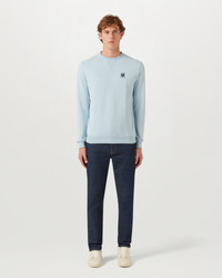 The Belstaff Sweatshirt. Simple and relaxed with a subtle Phoenix emblem on the chest, this easy jumper is fresh in Sky Blue. DETAILS - Cotton Fleece - Long-sleeved crew-neck sweatshirt - V-stitch neck detail - Ribbed collar, cuffs and hem - Embroidered Phoenix chest patch - 100% Cotton. Rib: 98% Cotton, 2% Elastane - Product ref: 100049SKBLU SIZE AND FIT - Fitted across the shoulders, with a relaxed fit through the body. Model wears a size M. Model measures: Height: 6'2", Chest: 36", Waist: 31" - Model wears a size M - Model Measures: Height: 6'1.5", Chest: 39", Waist: 30"