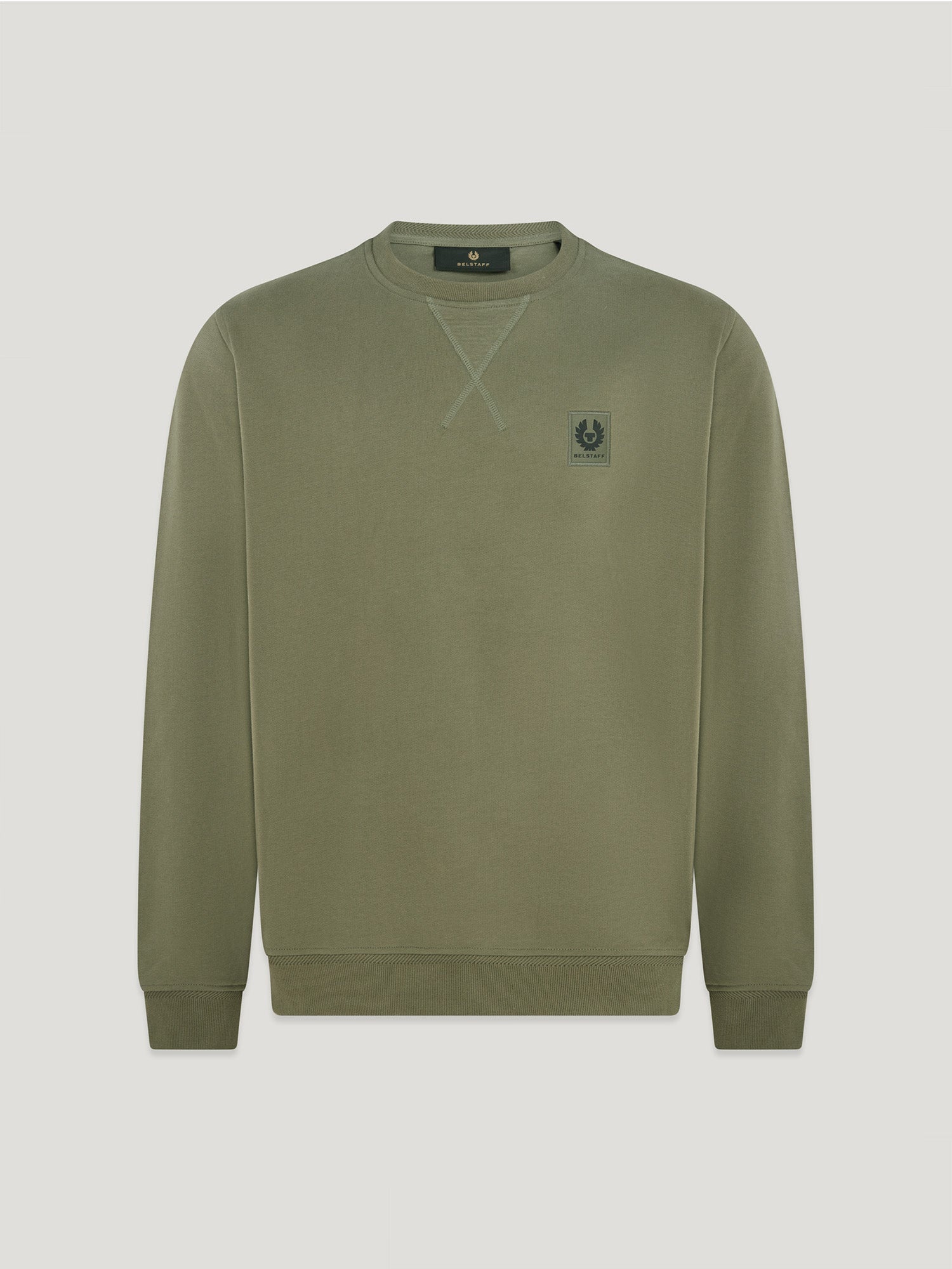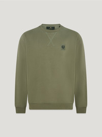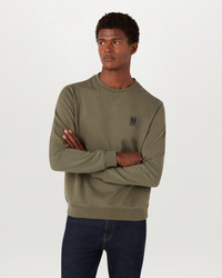 This Belstaff sweatshirt is a failsafe option in Surplus Green, cut with precision from brushed cotton – a style essential for your wardrobe all year-round. DETAILS - Belstaff brushed fleece with a soft hand feel - Long sleeved sweatshirt with crew neck - Ribbed collar, cuffs and hem - Belstaff phoenix patch on the chest - The fabric is made from organically grown cotton - Body: 100% Cotton Rib: 98% Cotton 2% Elastane - Product ref: 100049SPSGN SIZE AND FIT - Cut for a regular fit - Model wears a size L - Model measures: Height: 6'3", Chest: 38", Waist: 32"