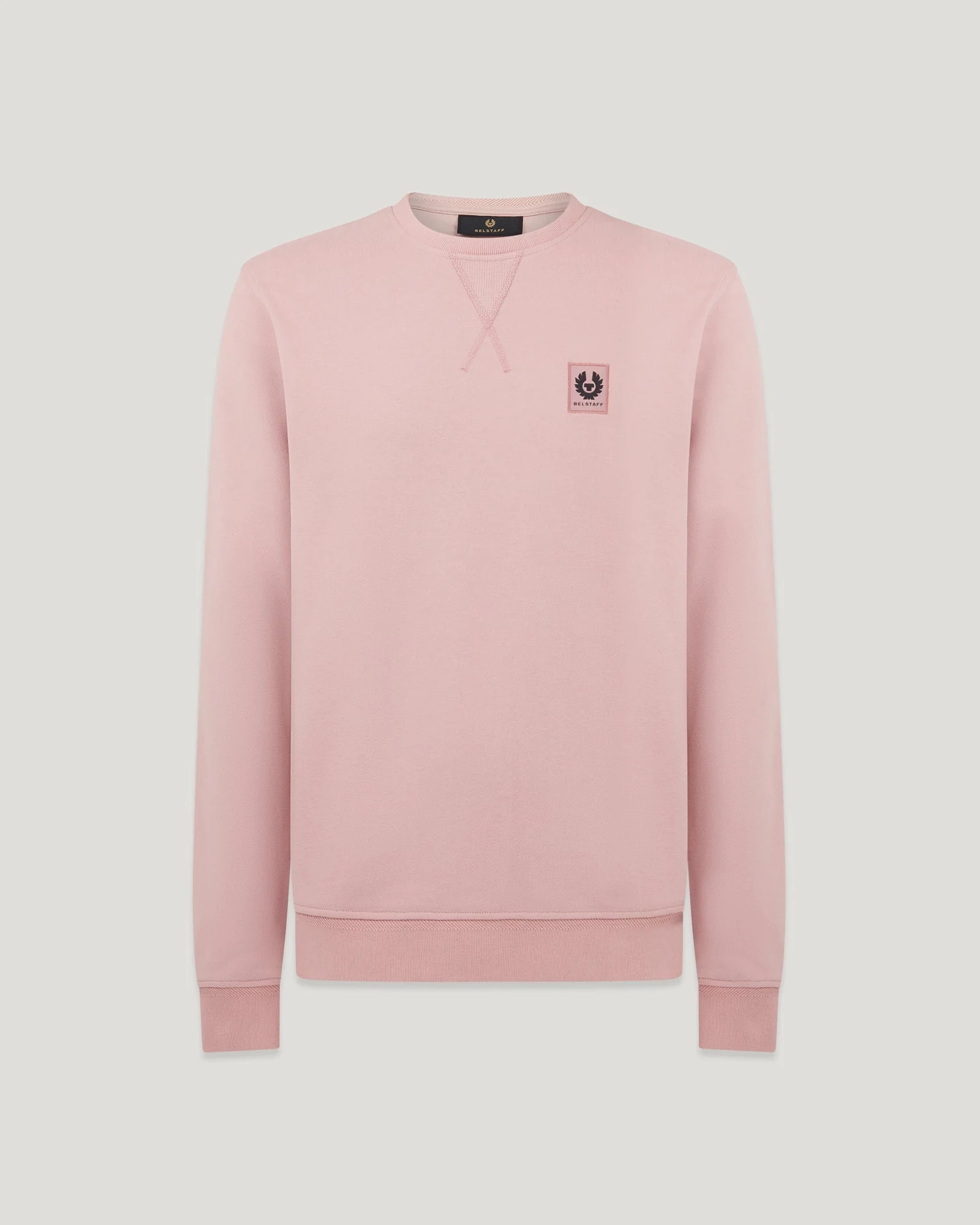 A failsafe sweatshirt cut with precision, this cotton fleece pullover in Wood Rose is a year-round essential. DETAILS - Cotton fleece - Ribbed collar, cuffs and hem - Belstaff phoenix patch on the chest - Global Organic Textile Standard - Main material: 100% Cotton - Product ref: Rose100049WDRSE SIZE AND FIT - Cut for a regular fit