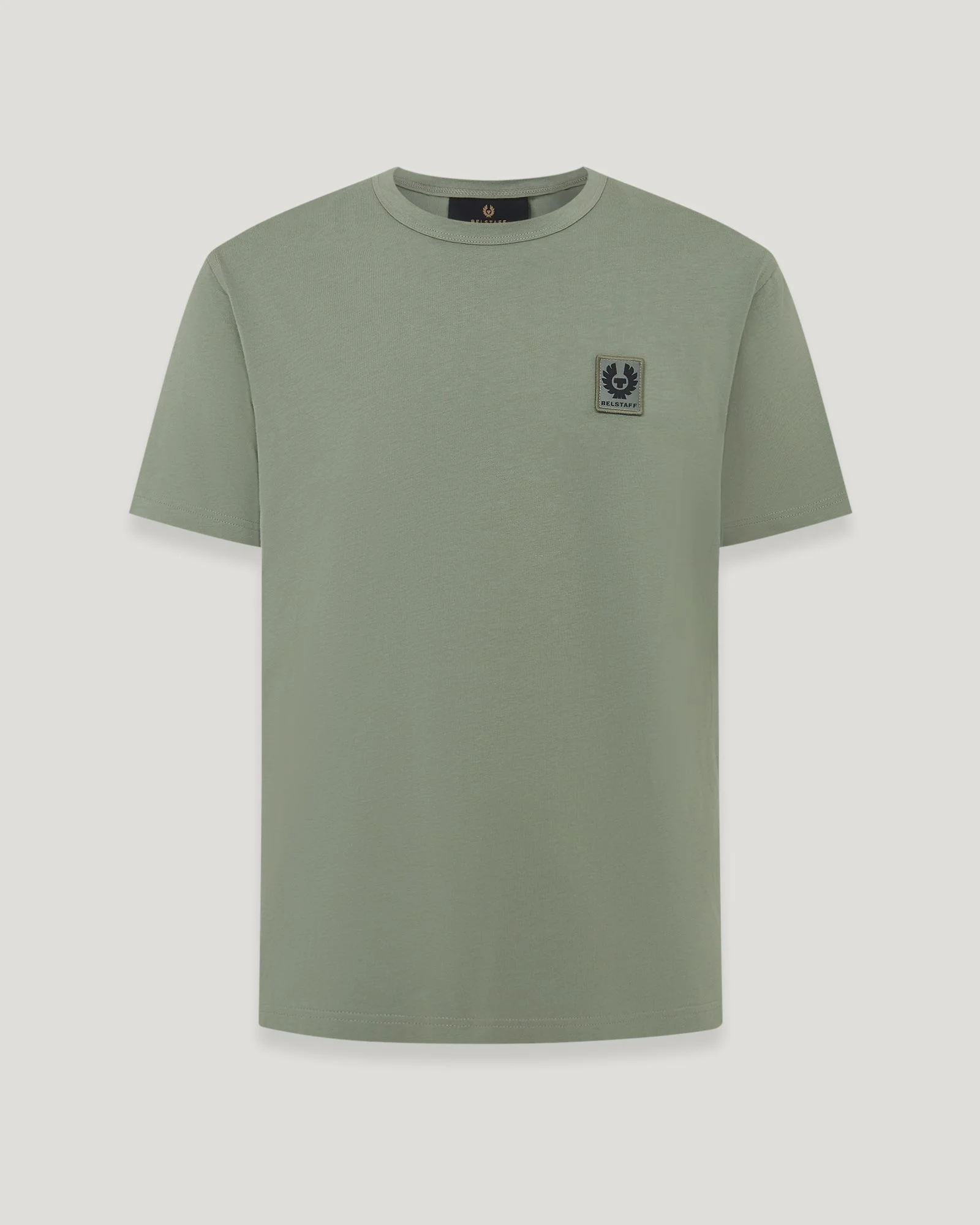 A classic crew-neck available in a palette of warm-weather colours. This short-sleeved T-shirt is cut from featherweight cotton jersey in a Sage Green shade for a soft, easy to wear wardrobe essential DETAILS - Featherweight cotton jersey - Classic short sleeve crew neck - Belstaff phoenix patch on left sleeve - Organically grown cotton - Main material: 100% Cotton - Product ref: 100055SAGGR SIZE AND FIT - Cut for a regular fit - Model wears a size M - Model Measures: Height: 6'1", Chest: 40", Waist: 31"