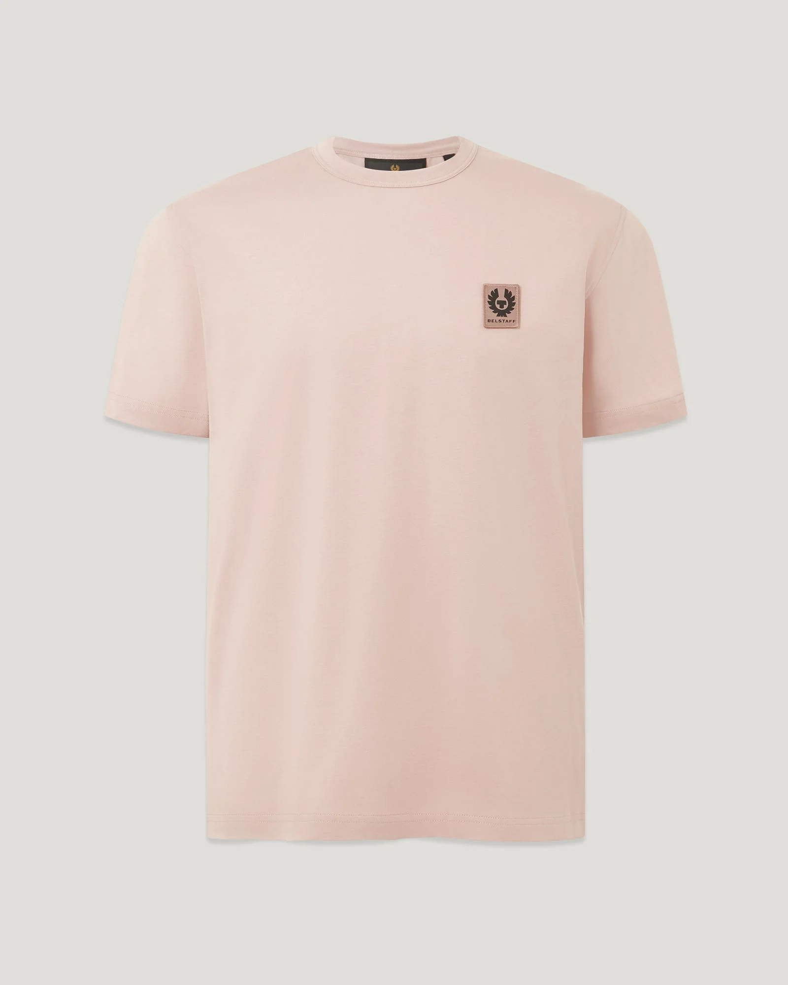 A classic crew-neck available in a palette of warm-weather colours. This staple T-shirt is cut from a featherweight cotton jersey in Dusk Pink. The fabric is soft, breathable and lightweight for all-season wear. It’s also durable and easy to care for, meaning it wears well with everything and will last for years. DETAILS - Featherweight cotton jersey - Classic short sleeve crew neck - Belstaff phoenix patch on left sleeve - Organically grown cotton - Main material: 100% Cotton - Made in Moldova - Dyed in Turkey - Size M has a 70 cm back body length - Product ref: 100055DSKPN SIZE AND FIT - Cut for a regular fit - Model wears a size L - Model measures: Height: 6.0", Chest: 42.5", Waist: 34"