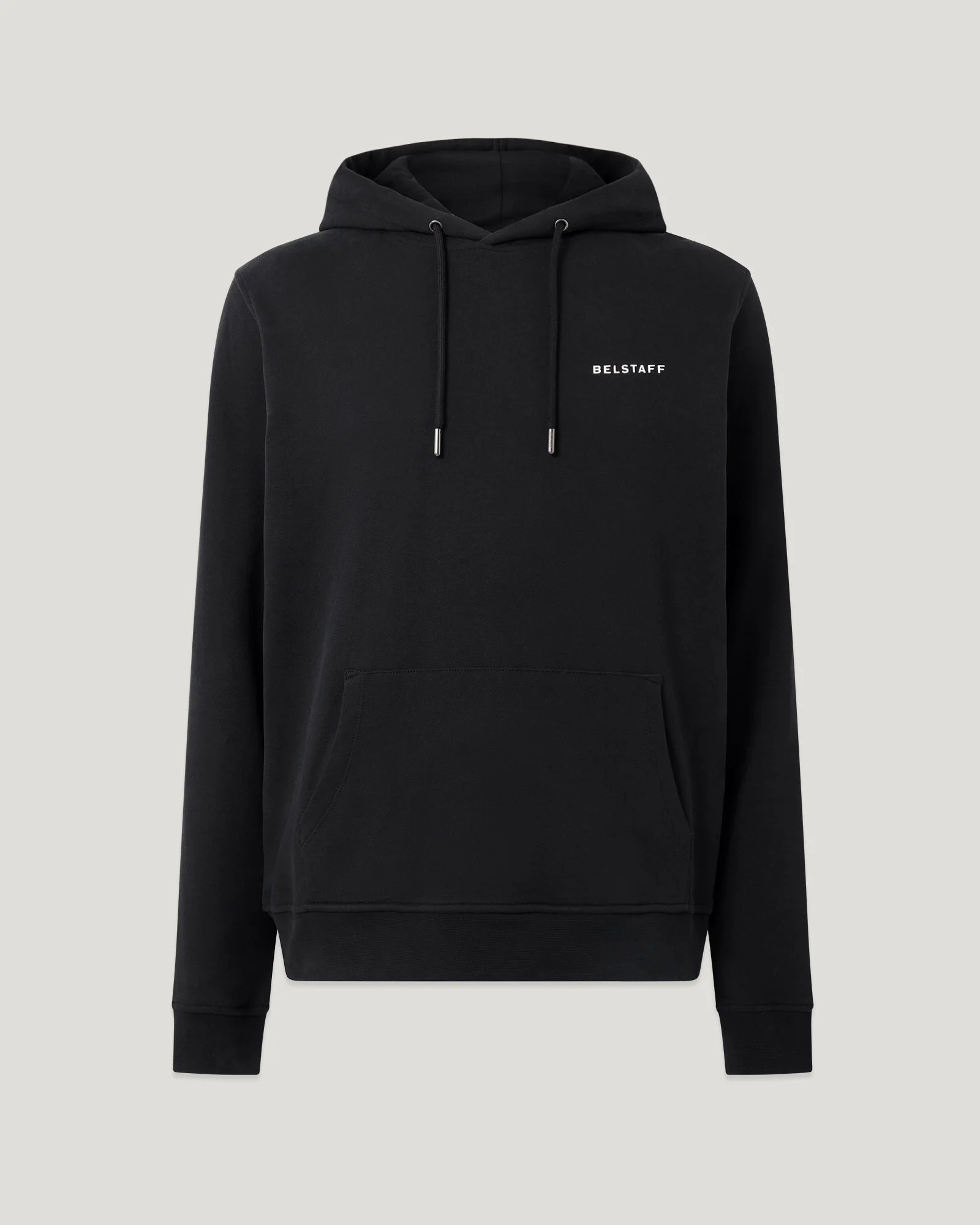 The Border hoodie is a relaxed jersey sweater in versatile black. Made from 100% organic cotton with a carbon finish to ensure extra softness, it features a graphic outline phoneix print at the back for a bold finish. DETAILS - Belstaff chest print and phoenix back print - Kangaroo pocket - Drawcord hood fastening - 100% organic cotton - Made in Portugal - Product ref: 106221BLACK SIZE AND FIT - Cut for a regular fit - Model wears a size L - Model measures : Height: 6'1", Chest: 40", Waist: 31"