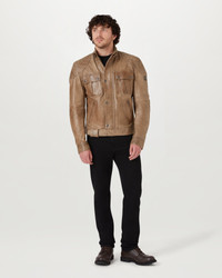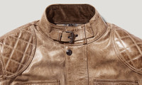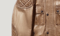 Requiring an 18-hour hand-waxing process to provide the colour and a patina unique to each jacket, the Brooklands in Birch is crafted from 100 per cent cow leather. Reinforcement beneath quilted shoulder and elbow patches and D3O shoulder and elbow armour combine for durability, comfort and protection. Oil resistant corduroy neck and cuff facings plus zipped side and inner pockets keep your valuables safe with the look completed by a metal patch logo and Belstaff checked woven cotton lining. DETAILS - Hand waxed leather (1-1.1mm thickness), shorter silhouette - 18 hours of hand waxing to provide the colour - Unique patina to each jacket - Protective reinforcement beneath elbow and shoulder patches - Belstaff checked woven cotton liningA - Oil resistant corduroy neck and cuff facingsA - Zipped side and inner pockets - Adjustable, knurled throat latch fastening - Zipped back protection pocket - Quilted shoulder and elbow patches - Metal patch logo on left arm - Engraved heavy duty stud fastenings - Buckle cover with embroidered logoA - High stand collar - Stud fastening cuff - 100% Cow leather - Certification: A - Protection: D3O Tri-ventilation level 1 (Elbow/Shoulder) - Product ref: 105376BIRCH SIZE AND FIT - Cut for a regular fit - Model wears a size L - Model Measures: Height: 6'2", Chest: 37", Waist: 32"
