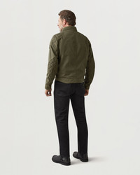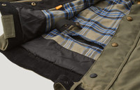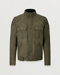 Hard-wearing but light British Millerain 8oz, ultracore waxed cotton in Olive Green with mesh zip ventilation openings and zipped side and inner pockets make the Brooklands tough, comfortable and practical. A lengthened body offers more cover when riding, and safety features include D3O shoulder and elbow armour. An interlayered breathable, waterproof membrane keeps you fresh while high tenacity nylon elbow and shoulder reinforcement, twin needle stitching, and oil resistant corduroy neck and cuff facings mean it’s built to last. DETAILS - 8oz. British Millerain Ultracore waxed cotton - Compatible with snap-in climate vest - Breathable, waterproof membrane - High tenacity nylon reinforcement at shoulder and elbow - Zipped mesh vents on bicep and back - Oil-resistant corduroy neck and cuffs - Zipped side and inner pockets - Knurled snap and buckle fastening throat latch - Zipped back protection pocket - Twin needle topstitching for strength - Zipped internal pocket - Engraved antique brass hardware - Buckle cover with embroidered logo - Belstaff logo patch on left arm - 52% cotton, 48% polyester - Certification: AA - Protection: D3O Tri-ventilation level 1 (Elbow/Shoulder) - Product ref: 104967OLIGR SIZE AND FIT - Cut for a regular fit - Model wears a size L - Model measures: Height: 6'1", Chest: 40", Waist: 31"