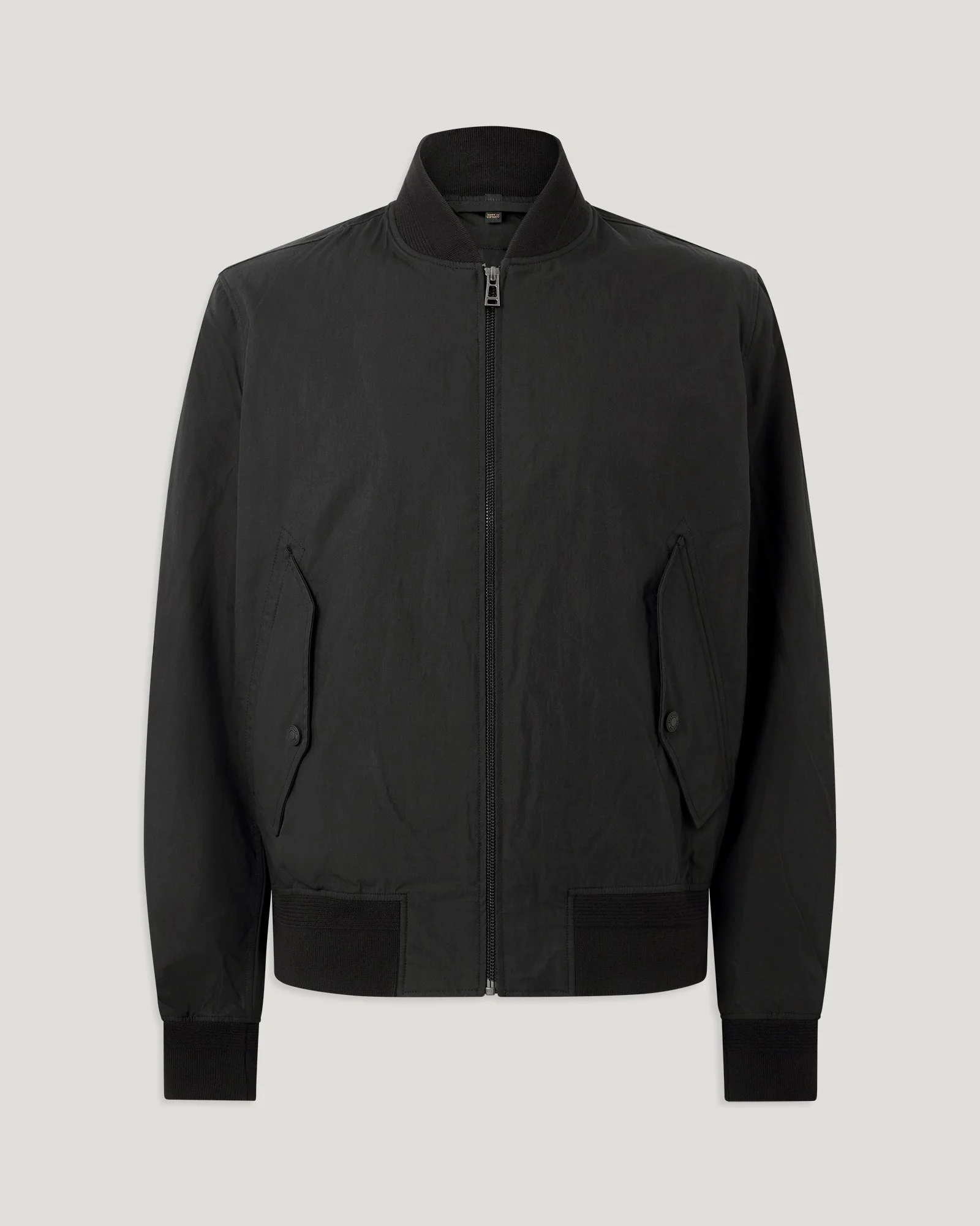 Discover the Carrier jacket in black. This effortlessly stylish bomber is crafted from compact technical cotton where the fibres are tightly packed together for a smooth finish that is soft, strong and durable. This minimalist piece is unlined, lightweight and features a regular fit. DETAILS - Front zip - Cotton ribbed collar, cuffs and hem - Slanted hip pocket flaps with snap eyelets at each underarm - Belstaff branding patch on left sleeve - Eyelets on underarms - Military racking details on ribs - Water Repellent - Shell: 72% cotton, 28% polyamide - Rib: 86% cotton, 12% polyester, 2% elastane - Made in Vietnam - Dyed and woven in South Korea - Product ref: 106107BLACK SIZE AND FIT - Cut for a regular fit - Model wears a size L - Model measures: Height: 6'1", Chest: 40”, Waist: 31"