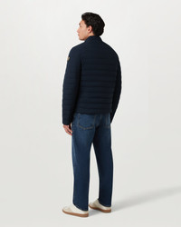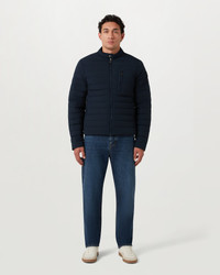 The Chassis jacket in Dark Ink. This lightweight puffer design is crafted from four-way stretch fabric that is water-repellent and filled with 750-fill power down for an unbeatable warmth-to-weight ratio. It combines a high level of insulation with a lighter and more compressible design. DETAILS - Stretch 750 power down-filled fabric - Front opening zip with piping - One snap at collar tab - Chest pocket with zip side entry - Hip pockets with zips - Internal pocket at wearers left-hand side - Fully lined - Water repellent - Body: 85% polyamide (recycled), 15% elastane - Made in Vietnam - Dyed and woven in China - Product ref: 106342DKINK SIZE AND FIT - Cut for a regular fit - Model wears a size L - Model measures: Height: 6.0", Chest: 42.5", Waist: 34"