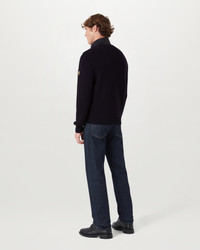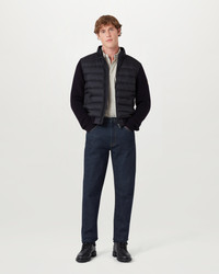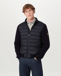 The Circuiteer cardigan in Dark Ink. This lightweight and compressible cardigan can also be worn as a jacket. It is crafted from high-density, water-repellent recycled nylon fabric – perfect for the outdoors. DETAILS - High-density, water-repellent nylon fabric - Lightweight and compressible - Ribbed cuff and hem - Knitted sleeves and back panel - Snap hip pockets with press stud fastening - Embroidered Belstaff phoenix patch on left sleeve - Centre front zip fastening - Recycled nylon - Non-mulesed wool - Main: 100% Recycled nylon - Fill: 90% Duck down, 10% Feather - Secondary fabric: 100% Merino - Product ref: 105859DKINK SIZE AND FIT - Cut for a regular fit - Model wears a size M - Model measures: Height: 6'1", Chest: 39”, Waist: 30"