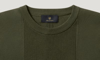 The True Olive Commander crew-neck jumper is an essential piece for your wardrobe. This military-inspired piece is made from 12-gauge compact organic cotton for a medium-weight finish with a good balance of warmth, breathability, and durability – perfect for year-round layering. DETAILS - 12 gauge compact mercerised organic cotton - Military inspired shoulder and elbow panelling - Rib stitch - Embroidered edge tonal Belstaff phoenix patch on left sleeve - Global Organic Textile Standard - 100% Compact organic cotton - Product ref: 105871TROLV SIZE AND FIT - Cut for a regular fit - Model wears a size M - Model measures: Height: 6'1", Chest: 39”, Waist: 30"