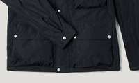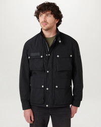 Our Competition series features the original Belstaff logo from customised 90s competition race suits. The black Competition field jacket is based on the iconic Trialmaster, with a contemporary drop shoulder silhouette and shorter length. This men’s piece is made from memory shell, a fabric that retains shape and resists wrinkles – perfect for travelling and outdoor activities. DETAILS - Based on iconic Trialmaster with contemporary drop shoulder silhouette and shorter length - Matt nickel snaps - Bellows pockets with snap closure - Competition logo on chest pockets - Competition tonal phoenix on arm sleeve - Snap throat latch - Snap adjustable cuffs - Wadded lining - Water repellent - Shell: 100% Polyester, Filling: 100% Polyester, Lining: 100% Polyamide (Recycled) - Product ref: 105897BLACK SIZE AND FIT - Cut for an oversized fit - Model wears a size L - Model measures: Height: 6'2", Chest: 42", Waist: 32"