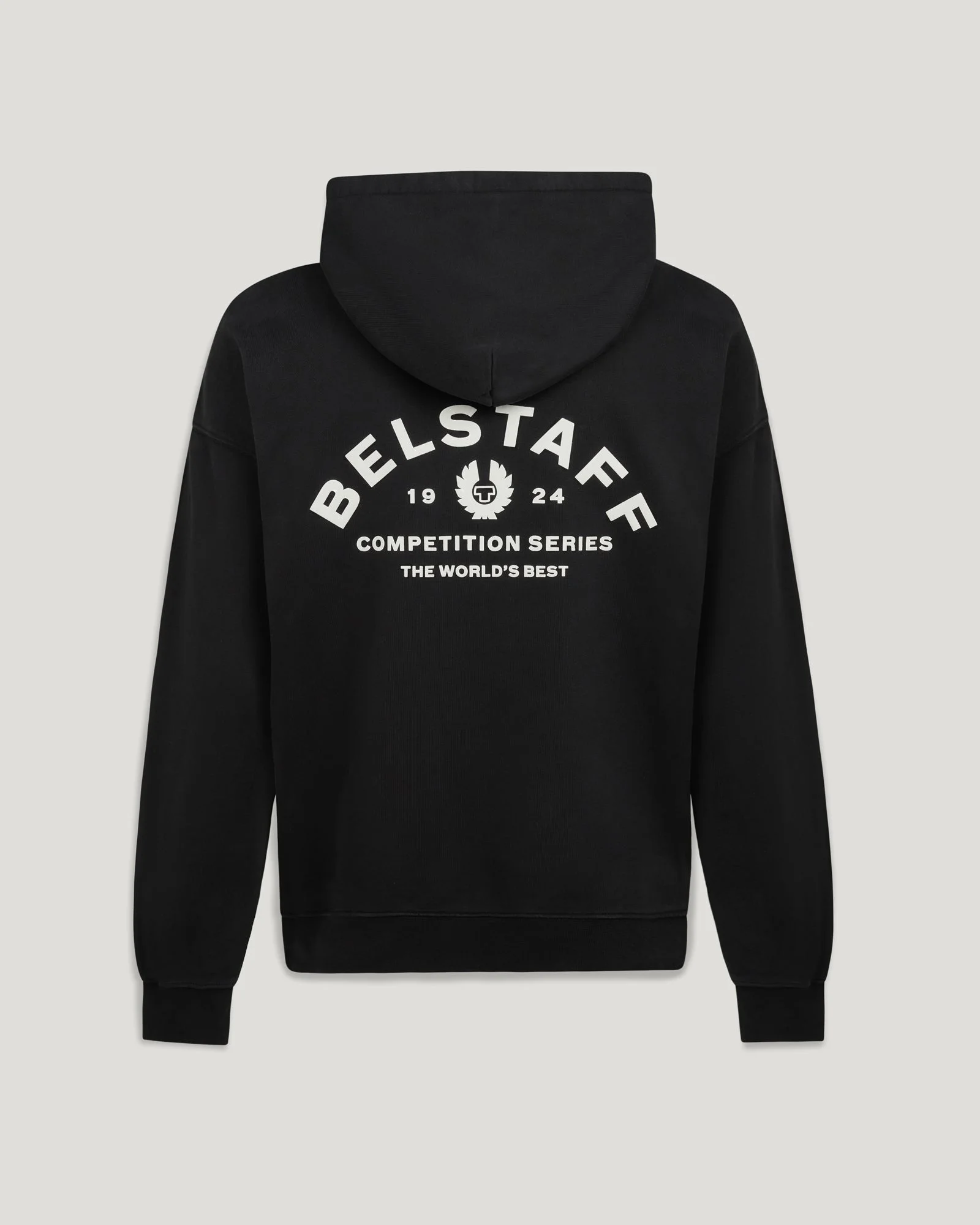 Our Competition series features the original '90s Belstaff logo from customised archival competition race suits. The black Competition hoodie is expertly crafted from heavyweight garment-dyed cotton fleece for superior warmth and durability, making it ideal for cold weather. This oversized men’s hoodie looks great with jeans or sportswear for a smart-casual look. DETAILS - Heavy garment dye fleece - Long sleeved hooded sweatshirt with crew neck - Kangaroo pocket - Rib cuffs and hem - Enlarged puff back print - Competition logo printed branding - Main material: 100% cotton - Product ref: f4352b11-2fd9-4f1c-8e30-6cb113baef7b SIZE AND FIT - Cut for an oversized fit - Model wears a size L - Model measures: Height: 6'1.5", Chest: 41", Waist: 32"