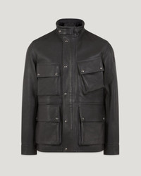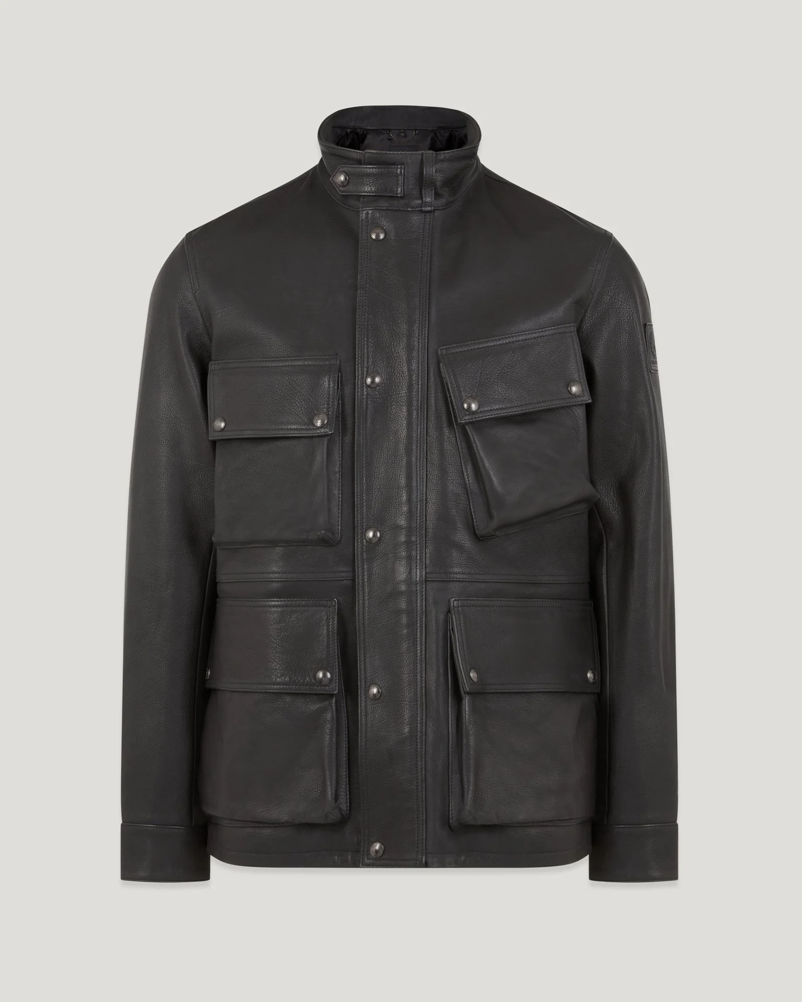 The black Competitor jacket has a classic four-pocket design. This men’s leather piece is crafted from 100% calfskin, which has full grain for durability and flexibility. It is a classic piece meticulously crafted to remain part of your outdoor collection for years to come. DETAILS - Durable cow leather with natural full grain - Based on Tribute fit - Snap throat latch - Adjustable press stud snap cuffs - Adjustable waist tabs - Centre front zip and placket with snaps - Four modern stormproof bellows pockets with dual press stud closure - Belstaff's leather products support responsible manufacturing via the Leather Working Group - Shell: 100% Cow leather, Lining: 100% Viscose, Pocket lining: 100% Cotton - Product ref: 105834BLACK SIZE AND FIT - Cut for a regular fit