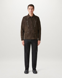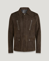 The Continental Jacket in Burnt Oak. A neat shape, soft suede and metal hardware combine for a modern look on this versatile style. DETAILS - The full-grain nappa-back suede is an ideal spring weight with a soft-hand velvet finish - Collared utility jacket - Covered centre front zip closure with snap closure placket - Adjustable cuffs - Leather phoenix patch on left sleeve - Zipped-fastening chest pockets - Snap fastening hip pockets - Belstaff`s leather products support responsible manufacturing via the Leather Working Group. - Shell: 100% Goat Leather, Sleeve Lining: 100% Viscose - Product ref: 104764BNTOK SIZE AND FIT - Cut for a regular fit - Model wears a size M - Model measures: Height: 6'2", Chest: 38", Waist: 30"