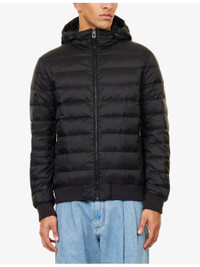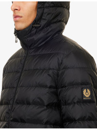 PRODUCT DETAILS - Belstaff shell-down jacket - 100% polyamide; filling 90% duck down, 10% duck feather; trims 90% cotton, 8% polyester, 2% elastane - Exposed zip fastening at front - Regular fit, high-neck, drawstring hood, long sleeves, brand patch at sleeve, two zip pockets at front, all-over quilted and padded, fully lined, ribbed trims - Machine wash at 30°C - Size medium: length 26in / 66cm, chest 42in / 107cm - Model is 6ft 2in/1.88m and wears a size medium - Midweight, non-stretch Ref: R04552621