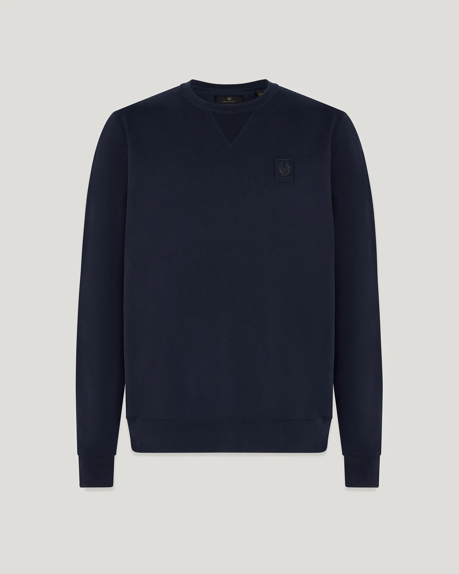 Meet the Curator crewneck sweatshirt in Dark Ink – your go-to sweatshirt this season. Crafted from Supima cotton fleece, it offers superior softness, durability, and breathability thanks to its extra-long staple fibres and unique construction. DETAILS - Supima cotton fleece - Rib collar, cuffs and hem - Embroidered tonal Belstaff phoenix chest patch branding - Herringbone trim on internal back neck trim - Supima Cotton - Product ref: 105883DKINK SIZE AND FIT - Cut for a regular fit - Model wears a size L - Model measures: Height: 6'1", Chest: 38", Waist: 32"