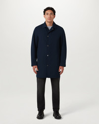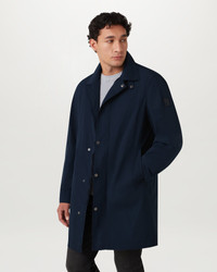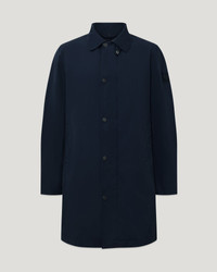 Meet the Farer coat in Dark Ink. This minimalist piece is based on the classic car coat silhouette with a reworked fit. It is crafted from Alpha Nylon gabardine, which has shape-retaining qualities and is lightweight and highly durable. The water-repellent finish is perfect for spring showers. DETAILS - Signature gunmetal snaps - Mid thigh length - Tonal silicone badge - Snap closure placket with centre front zip fastening - Water repellent - 70% polyamide (recycled) 30% polyamide - Made in Vietnam - Dyed and woven in South Korea - Product ref: 106111DKINK SIZE AND FIT - Cut for a regular fit - Model wears a size L - Model measures: Height: 6.0", Chest: 42.5", Waist: 34"